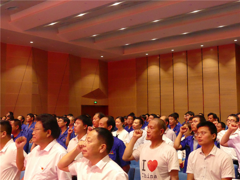 大會在雄壯的國歌聲中拉開序幕。首先公司黨委委員、副總經(jīng)理郭日倉作了《黨委工作報告》。報告總結了過去一年來的黨建工作,指出了黨建工作存在的不足,并提出了下一步工作的努力方向。公司黨委委員、鑄鍛公司副總經(jīng)理曹慶平宣讀《關于表彰2019年度優(yōu)秀共產(chǎn)黨員的決定》。大會為2019年度在公司各條戰(zhàn)線涌現(xiàn)出的10名優(yōu)秀黨員頒發(fā)榮譽證書;接著舉行新黨員入黨宣誓和老黨員重溫入黨誓詞儀式,全體黨員舉起右手,握緊拳頭,面向黨旗,莊嚴宣誓“我志愿加入中國共產(chǎn)黨,擁護黨的綱領,遵守黨的章程……”,錚錚誓詞響徹會議室。