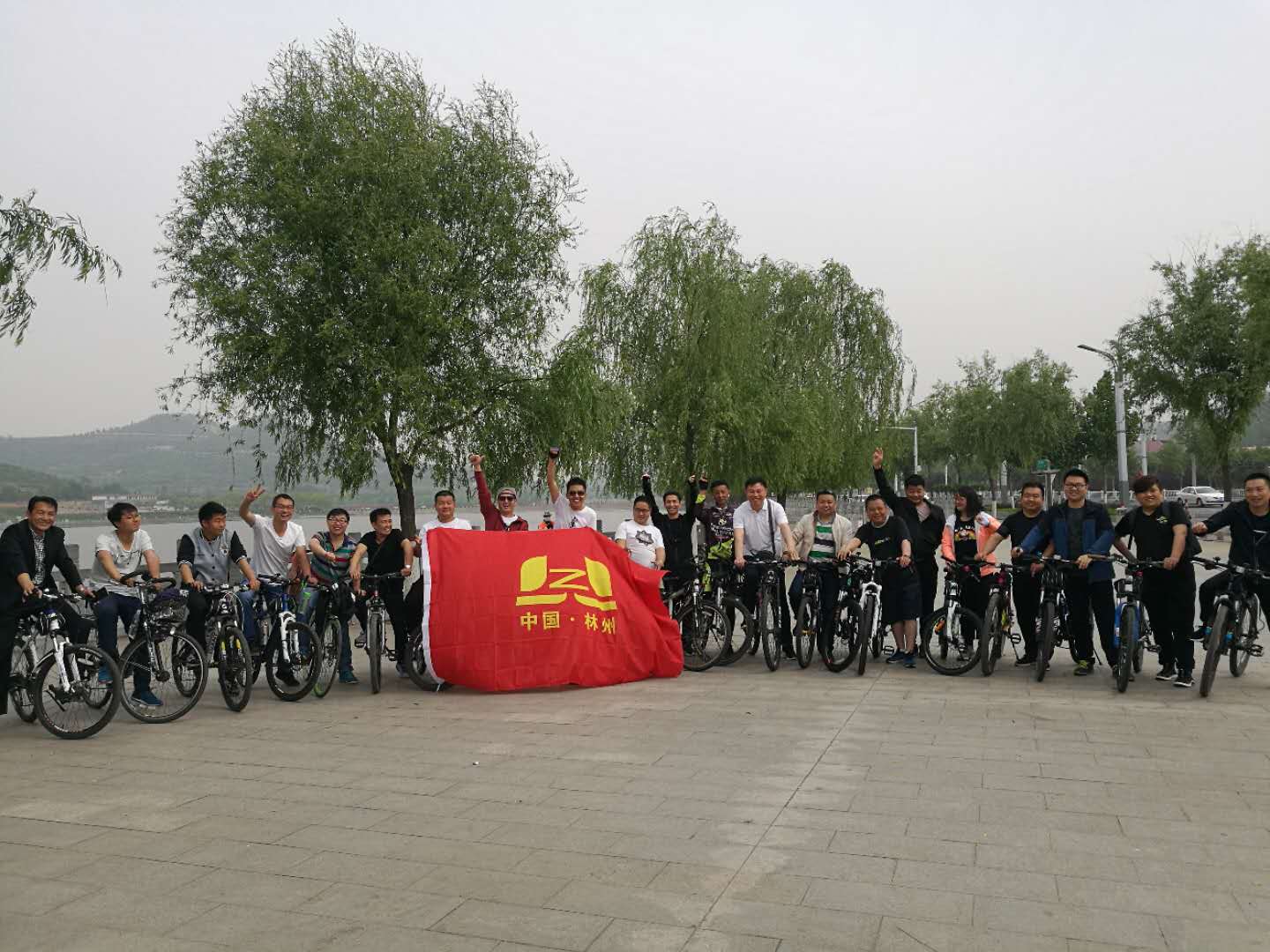 上午9時,所有參加騎行的人員在林州市龍湖集合完畢并合影留念后,隨著郭釧總經理一聲“出發”號令,騎行隊伍以高昂的熱情向目的地進發,沿途經過了采桑鎮、東姚鎮、臨淇鎮等鄉鎮的數個村莊,長途跋涉近50㎞后,于下午1時許到達目的地——萬泉湖景區。經過休整,下午騎行隊伍經臨淇鎮、桂林鎮、合澗鎮,于下午6時許安全返回至林州市區。